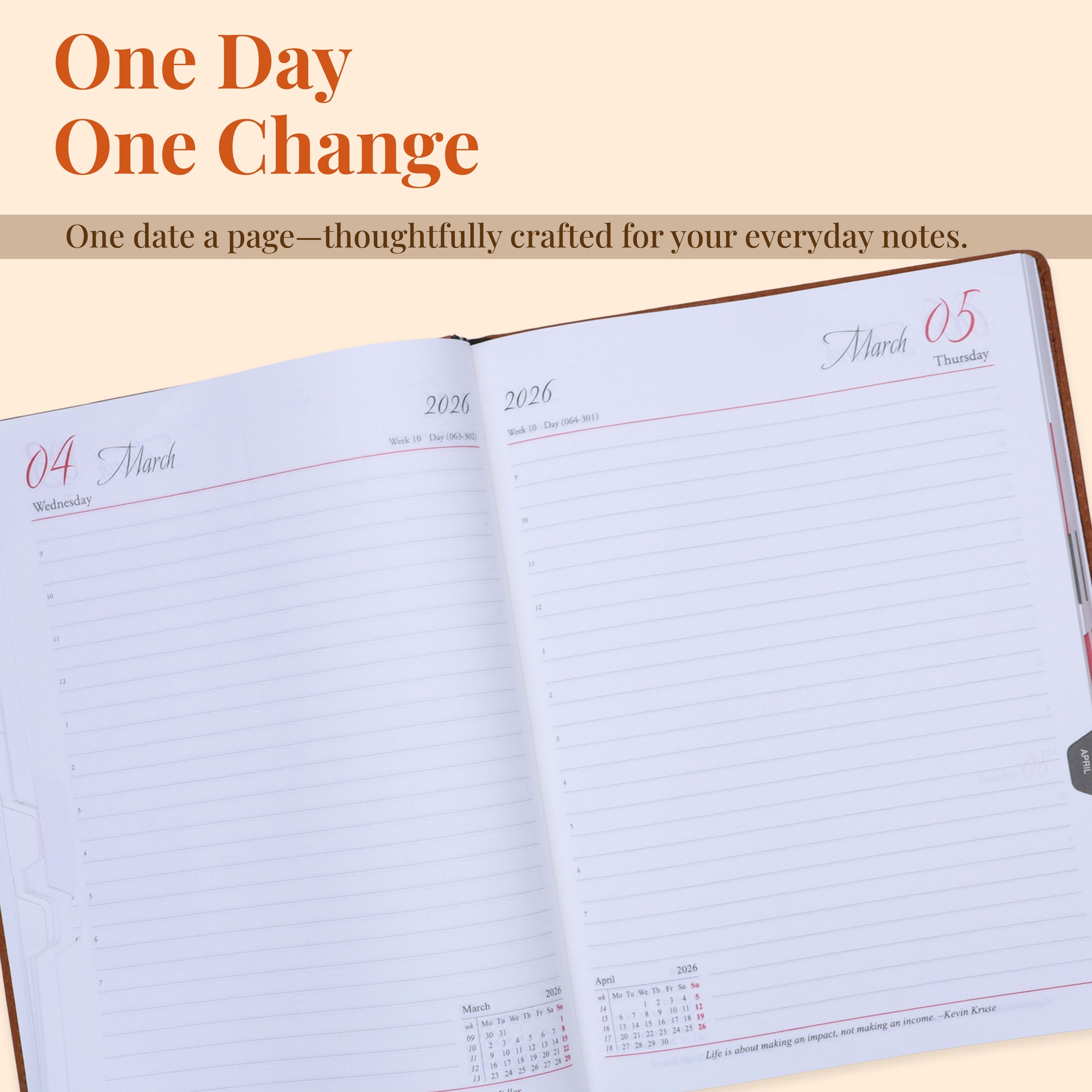 Layout: One Date a Page with 2-Page Planner & Month Tabbing