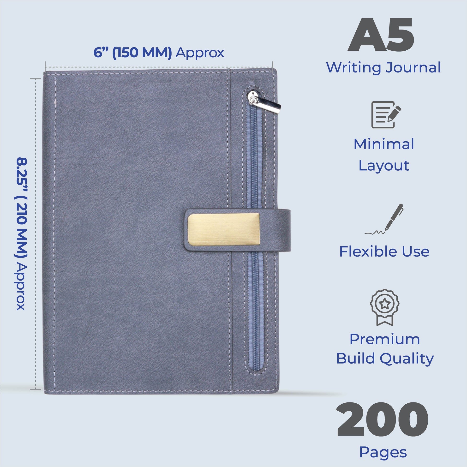 FOR U Elano A5 Zipper Pocket Blank Journal - Grey