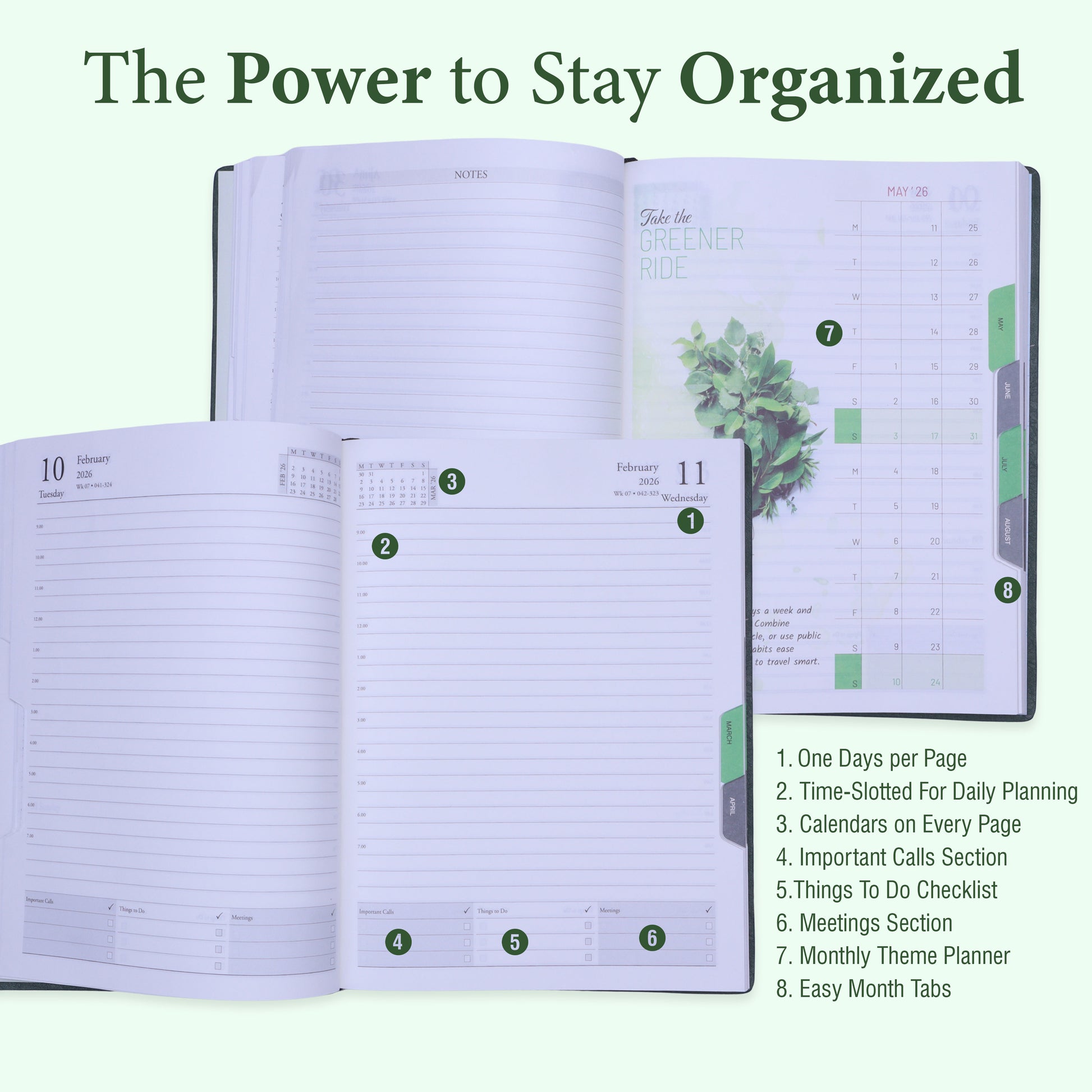 Its theme planner layout, monthly tabs, and One-Date-a-Page design help professionals track goals and manage their year with clarity.