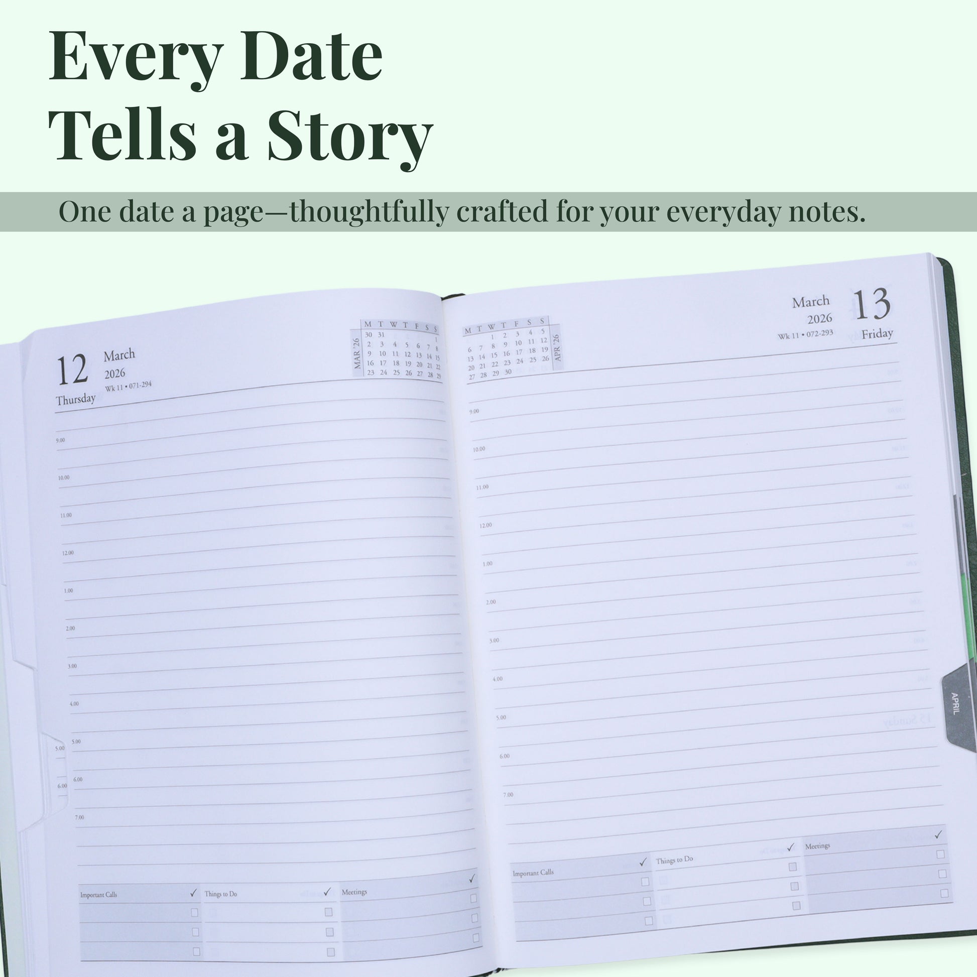 Layout: 2026 One-Date-a-Page theme-based diary with month tabs